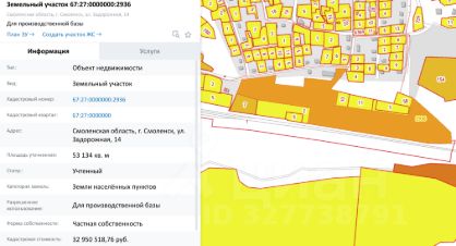 Продается земельный участок площадью 50519 кв.м., расположенный по адресу: г. Смоленск, ул. Задорожная, 14, кадастровый номер: 67:27:0000000:6938.