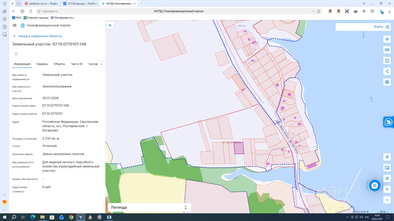 Земельный участок, свободный от застройки, площадью 2232 кв.м., кадастровый номер 67:15:0710101:148, расположенный по адресу: Российская Федерация, Смоленская область, муниципальный округ Рославльский, с. Богданово, с разрешенным использованием земельного участка: для ведения личного подсобного хозяйства (приусадебный земельный участок), из земель населенных пунктов.13