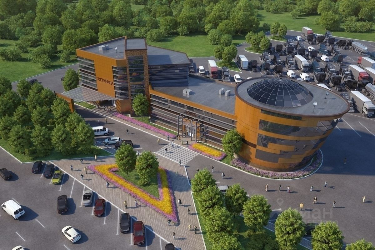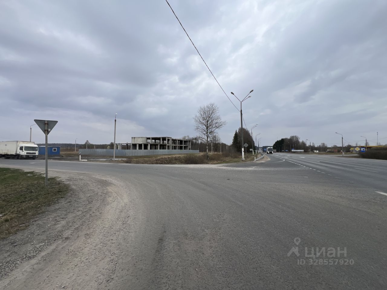 На участке здание (объект незавершенного строительства) 872 кв. м.. кадастровый номер: 67:10:0110101:929, степень готовности: 25%, проектируемое назначение: придорожный сервис (кафе, гостиница, шиномонтаж).