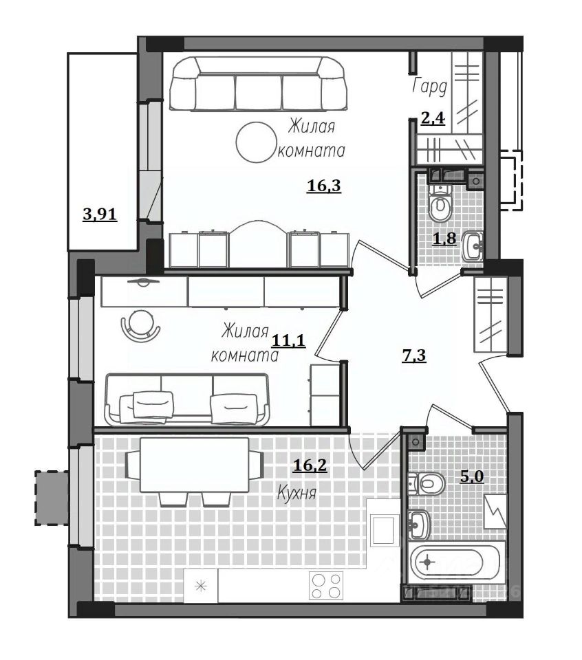 Общая площадь63,49 м²