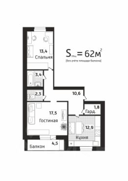 62 м²