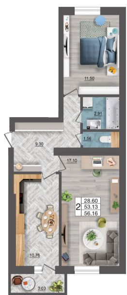 Продаётся 2-комнатная квартира в сданном доме (дом 5, сек. 3), срок сдачи: II-кв. 2025, общей площадью 56.16 кв.м., на 3 этаже. Расположение, транспортная доступность