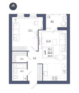 Продаётся 1-комнатная квартира в строящемся доме (Дом 2 ), срок сдачи: II-кв. 2027, общей площадью 54 кв.м., на 10 этаже. Перспективный проект.