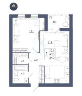 Продаётся 1-комнатная квартира в строящемся доме (Дом 1), срок сдачи: II-кв. 2027, общей площадью 54 кв.м., на 12 этаже. Перспективный проект.