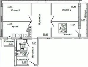3-комн. квартира, 101,6 м²