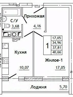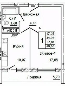 Общая площадь40,66 м²