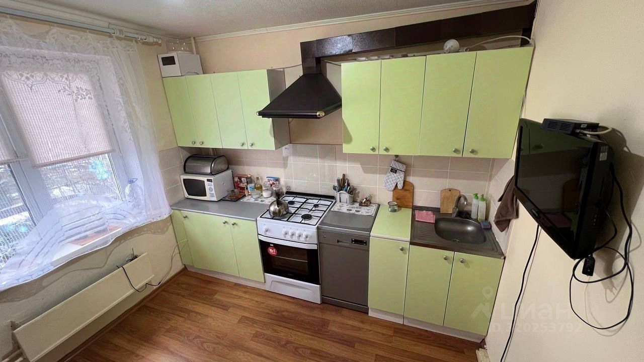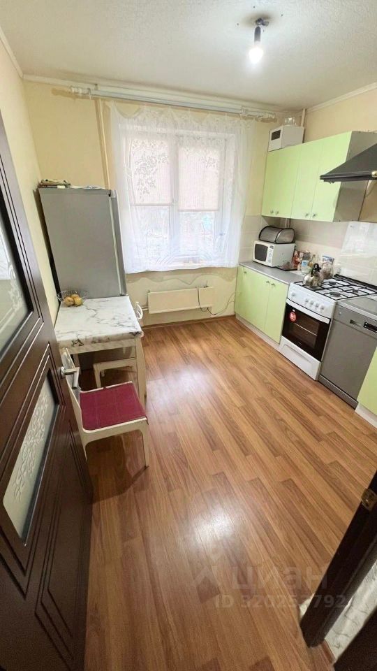 Кухня площадью 9 квадратных метров оборудована необходимой бытовой техникой, включая холодильник, стиральную машину и посудомоечную машину. В комнате установлен вместительный шкаф для хранения вещей.