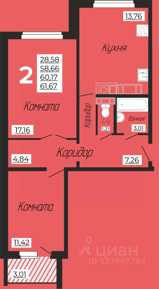 61,67 м²