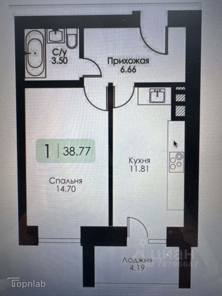 Общая площадь — 38,8 м²: