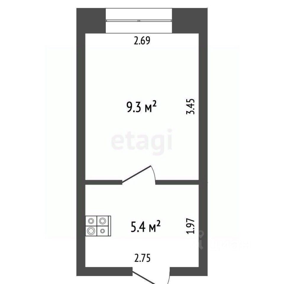 Общая площадь-14.7 кв.м., жилая площадь-9.3 кв.м., кухня-5.4 кв.м. Интеллигентные и доброжелательные соседи, всегда чистый этаж и подъезд.