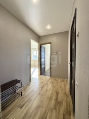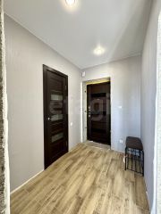 Натяжные потолки, на полу уложен ламинат и керамогранит, поклеены обои, установлена хорошая входная дверь.