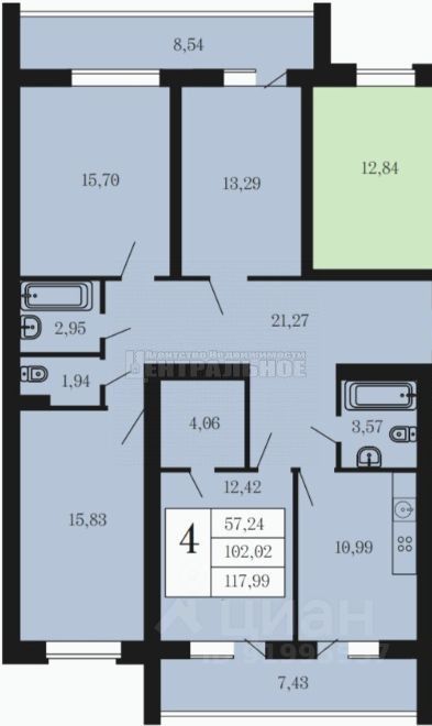 Индивидуальное отопление. Высокие потолки 2,7 м. Большая лоджия.