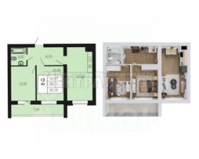 B продаже двухкoмнaтнaя квaртира в микрорайоне "БОРОВАЯ ПАРК".