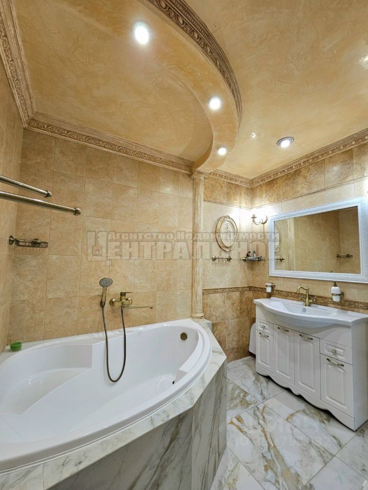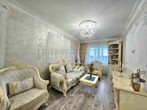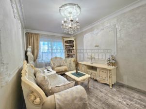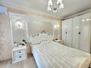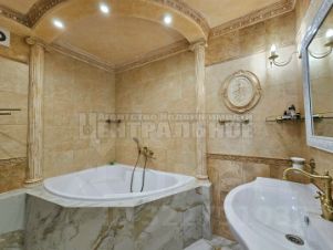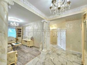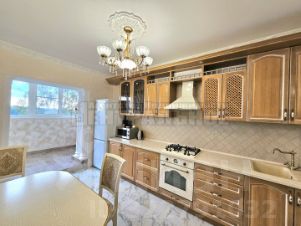 Ремонт выполнен в стиле ампир, использовались качественные, дорогостоящие материалы: венецианская штукатурка, итальянская плитка, настоящая гипсовая лепнина с оригинальными статуями и т.п. Кухня из массива дерева со встроенной техникой выполнена в классическом стиле, (практически не пользовались, духовка в упаковке).