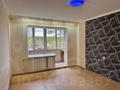 Стены выровнены, на полу ламинат, полоток натяжной, имеется дополнительная подцветка в нише. Радиаторы поменяны.
