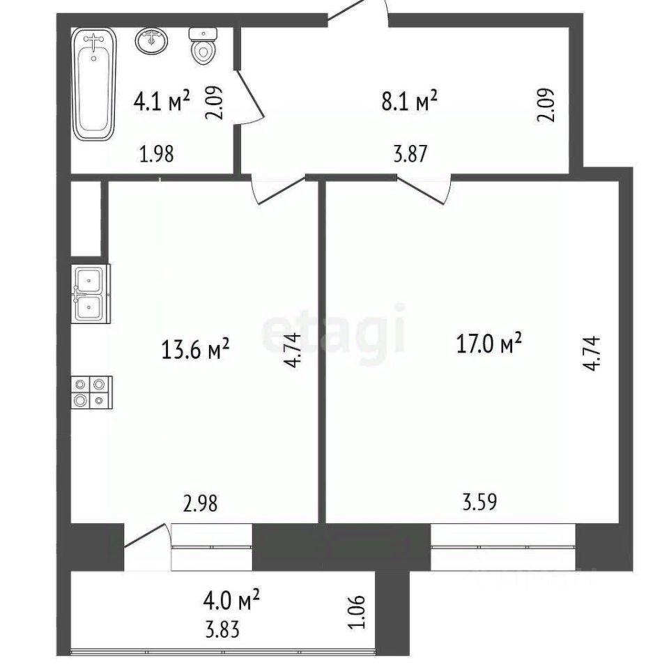 - лоджия-4 кв.м. не остеклена