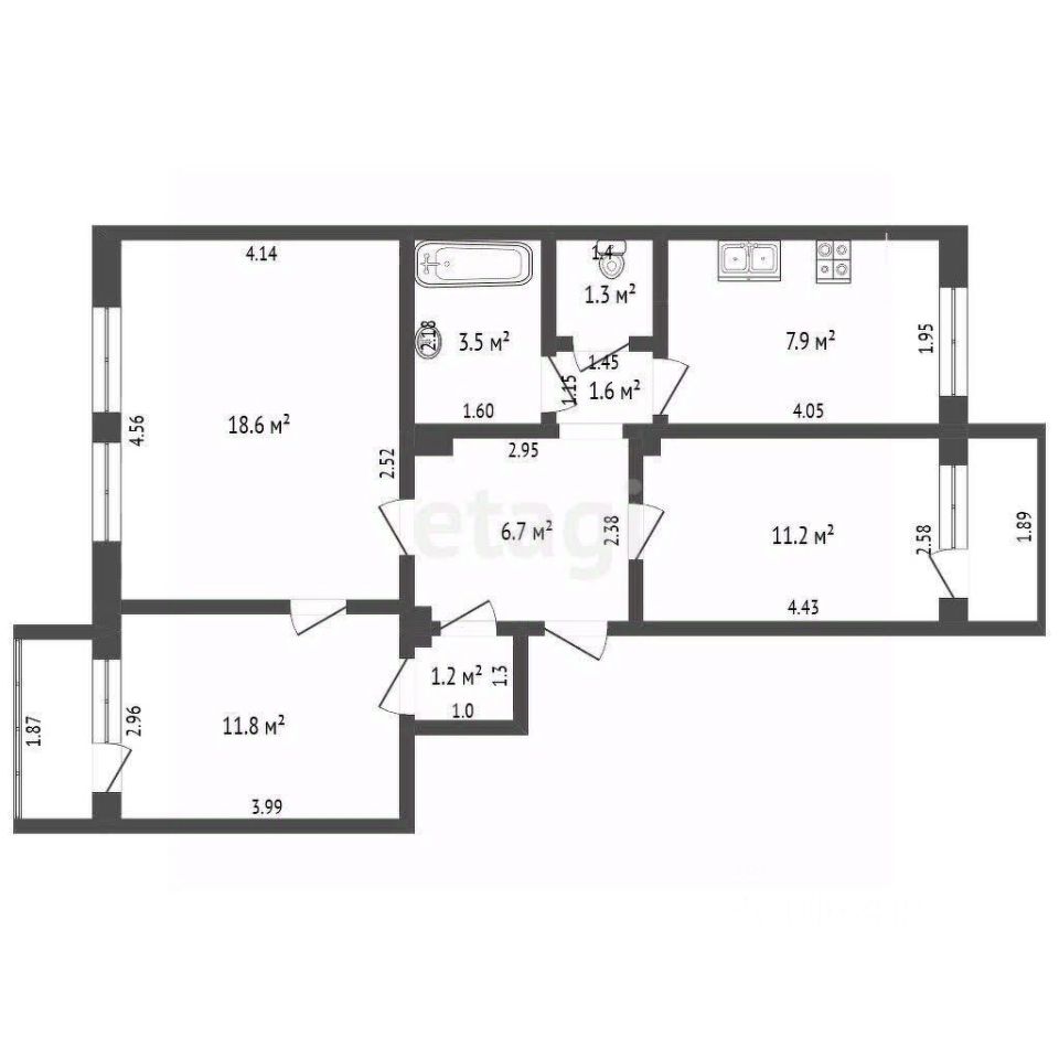 Ремонт в комнатах и коридоре не закончен (видны конструкции, требующие финишной отделки). Это ваш шанс создать идеальное жилье под свой вкус.