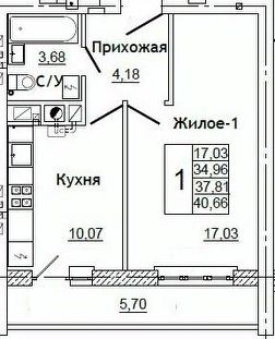 Общая площадь40,66 м²
