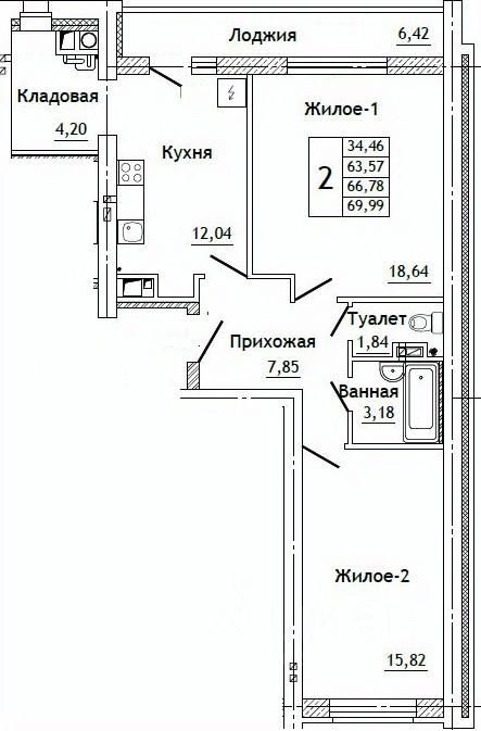 Общая площадь69,99 м²