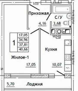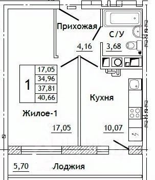 Общая площадь40,66 м²