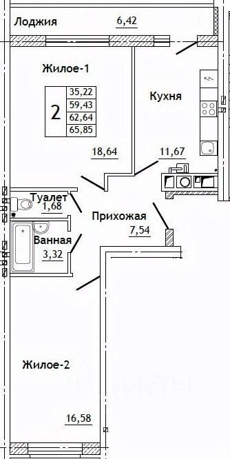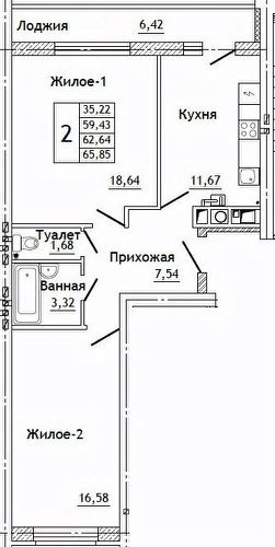 Общая площадь65,85 м²