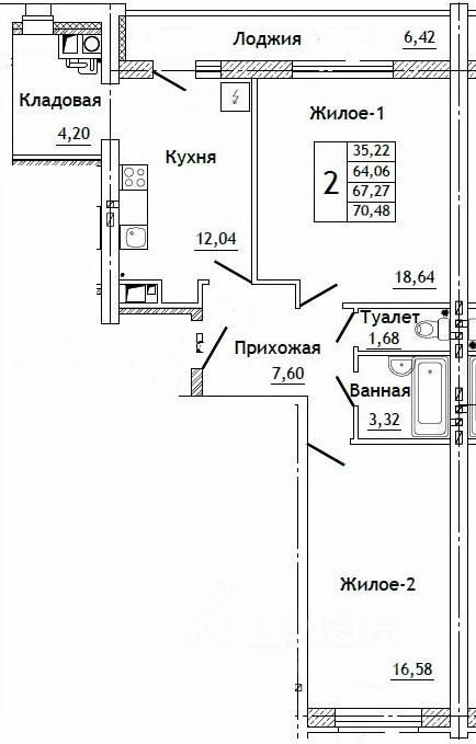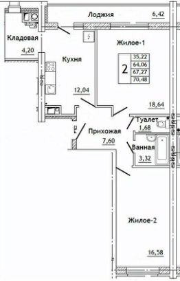 Общая площадь70,48 м²