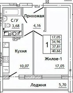 Общая площадь40,66 м²