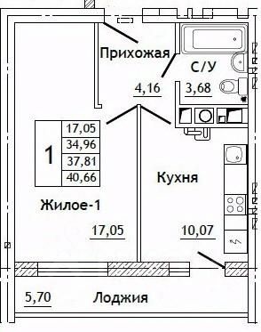 Общая площадь40,66 м²