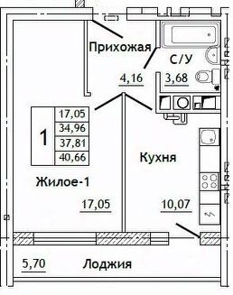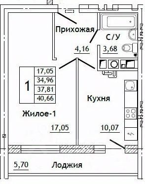Общая площадь40,66 м²