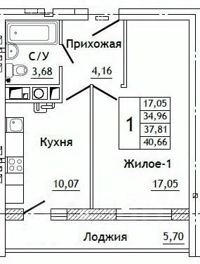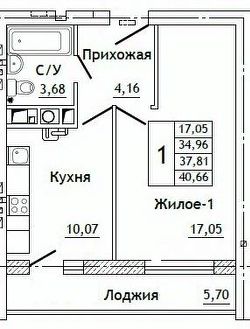 Общая площадь40,66 м²