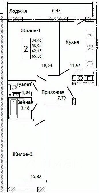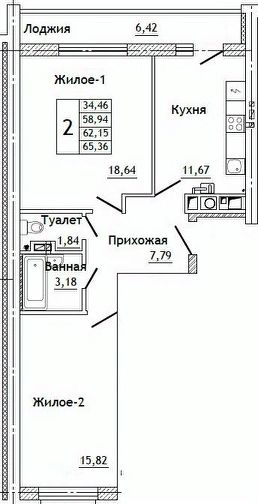 Общая площадь65,36 м²