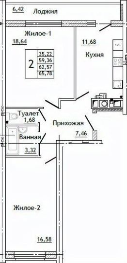 Общая площадь65,78 м²