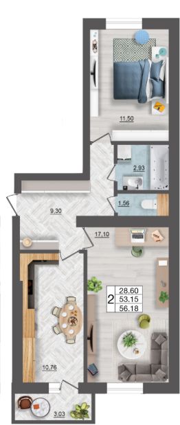 Продаётся 2-комнатная квартира в строящемся доме (Краснинское ш., 28А (дом 4, сек. 3)), срок сдачи: IV-кв. 2025, общей площадью 56.16 кв.м., на 3 этаже. Расположение, транспортная доступность