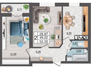 Общая площадь52,33 м²