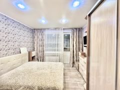 Продается трехкомнатная квартира на седьмом этаже девятиэтажного дома, квартира очень теплая не угловая. Готова к заселению и комфортному проживанию, выполнен качественный ремонт с натяжными потолками и укладкой ламината, установлены современные стеклопакеты, балкон застеклен. Для обеспечения автономности в квартире имеется водонагревательный бак. Часть функциональной мебели и встроенной техники, включая посудомоечную и стиральную машины, остается новым владельцам, что позволяет заехать без дополнительных затрат и хлопот. Дом содержится в порядке, подъезд отремонтирован и содержится в чистоте, а окружение характеризуется как спокойное и добрососедское. Ключевое преимущество — развитая пешая инфраструктура: в нескольких минутах ходьбы расположены сетевые супермаркеты, детский сад и школа. Остановки общественного транспорта также находятся в непосредственной близости, обеспечивая быструю связь с другими районами города. Это предложение сочетает в себе уют личного пространства, продуманную практичность и выгодное расположение.