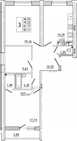 15,3 м²