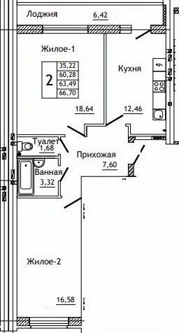 Общая площадь66,7 м²