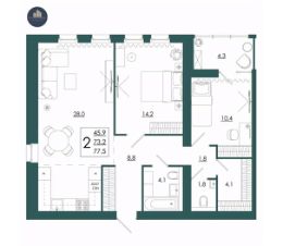 Продаётся 2-комнатная квартира в строящемся доме (Дом 1), срок сдачи: II-кв. 2027, общей площадью 77.5 кв.м., на 6 этаже. Перспективный проект.