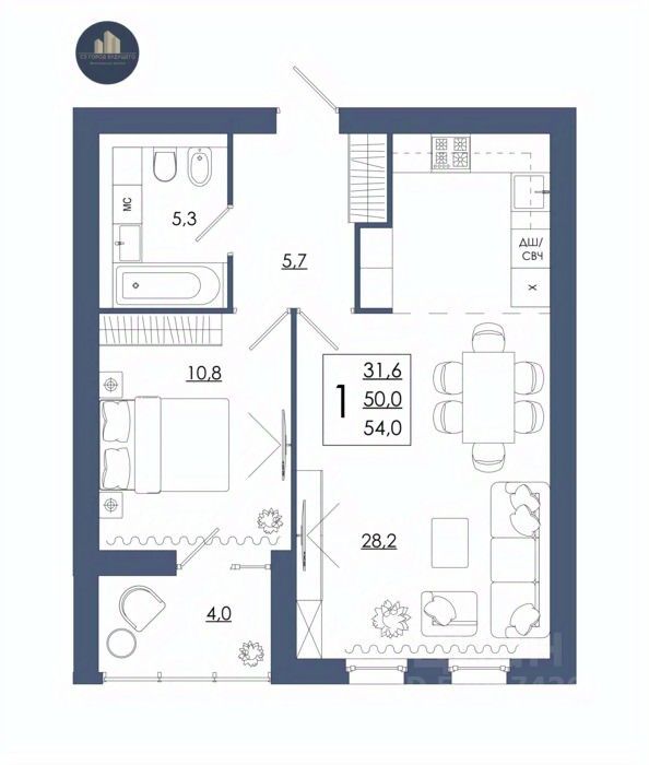 Продаётся 1-комнатная квартира в строящемся доме (Дом 1), срок сдачи: II-кв. 2027, общей площадью 54 кв.м., на 12 этаже. Перспективный проект.