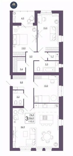 Продаётся 3-комнатная квартира в строящемся доме (Дом 2 ), срок сдачи: II-кв. 2027, общей площадью 110.5 кв.м., на 7 этаже. Перспективный проект.