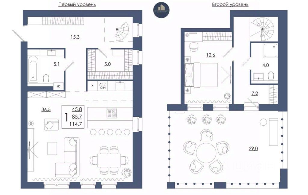 Продаётся 1-комнатная квартира в строящемся доме (Дом 2 ), срок сдачи: II-кв. 2027, общей площадью 114.7 кв.м., на 16 этаже. Перспективный проект.