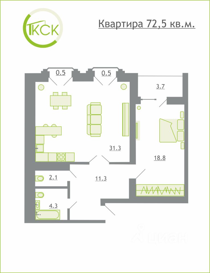 Продаётся 1-комнатная квартира в сданном доме (дом 1), срок сдачи: II-кв. 2025, общей площадью 72.5 кв.м., на 5 этаже. Новый жилой комплекс "Александровский" от застройщика "Контакт" расположен по адресу Смоленская область, Смоленский район, Козинское сельское поселение, деревня Киселёвка.