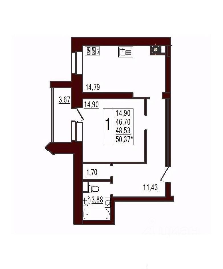 Продаётся 1-комнатная квартира в строящемся доме (2 этап), срок сдачи: III-кв. 2026, общей площадью 48.53 кв.м., на 2 этаже. 9-этажный многоквартирный жилой дом со встроенными помещениями общественного назначения на 1 этаже на улице Ленина, 71 города Вязьмы.