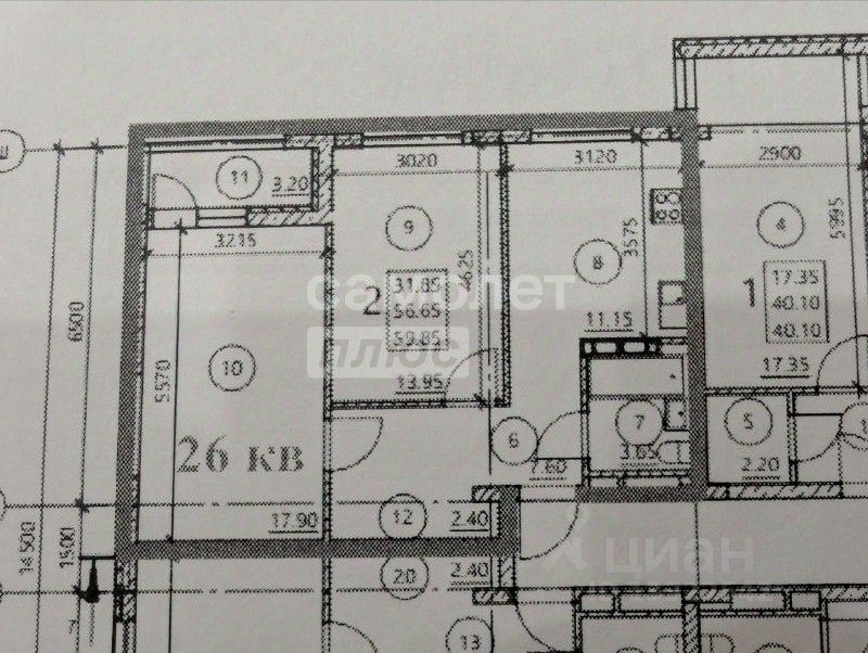 Площадь: Общая 59,9 кв.м (кухня 11,2 кв.м + жилая 31,9 кв.м).