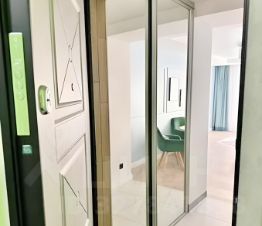 Стильное жилье . Продаю свою квартиру евродвушку. Единственный собственник -я. Владею более 5 лет . Постоянно в квартире не проживали . Квартира в идеальном состоянии . Произведена перепланировка , сделаны панорамные окна .На кухне полноценное спальное место на двоих . Выполнен дизайнерский ремонт . На кухне зеркальное пано в стиле Burberry. Так же на кухне за дверью гармошкой из закаленного стекла встроенный шкаф и стиральная машина .Тут же пылесос . Все двери в квартире из крашенного эмалью цельного массива . Рейки из массива ясеня . Дверь между гостиной и кухней сдвижная , скрытые полозья на потолке . Все полы с подогревом , даже на лоджии. На лоджии встроенный шкаф . Выход на лоджию и с кухни и с гостиной . Дорогие итальянские светильники . В ванной итальянская плитка .В коридоре встроенный шкаф, с полозьями на потолке . ( пол цельным полотном)На кухне встроенный холодильник Gorenje и посудомоечная машина . Сантехника немецкая Grohe. Все продумано до мелочей. Огороженная территория с автоматическими воротами . Детская площадка во дворе , скамеечки , клумбы , стол для пинг понга. Элитный дом-свечка в центре города. Всего 1 подъезд . До парка 5 минут пешком .