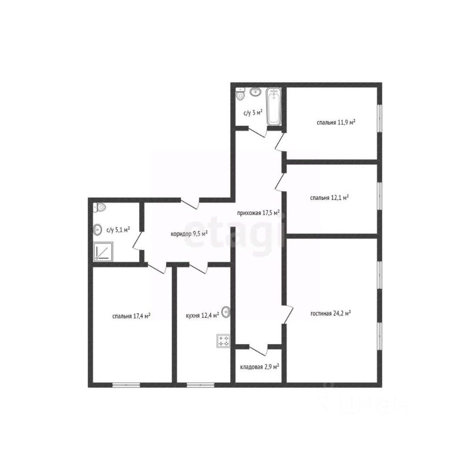 Взрослые собственники. Часть окон выходят во двор дома, 4 окна - на парковочную зону. В квартире 2 санузла: в одном обустроена душевая кабина, во втором ванна. Также есть кладовка.