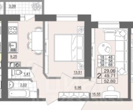 Продается уютная двухкомнатная квартира в новом жилом комплексе по адресу Смоленск, Вяземская улица, 34Б. Общая площадь квартиры составляет 52.8 кв. м, из которых жилая занимает 29.06 кв. м, а кухня просторные 9.25 кв. м. Квартира расположена на 2-м этаже 7-этажного дома.
