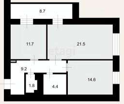 Просторная ЛОДЖИЯ (8,7 кв.м.) с выходом из кухни и гостиной.
