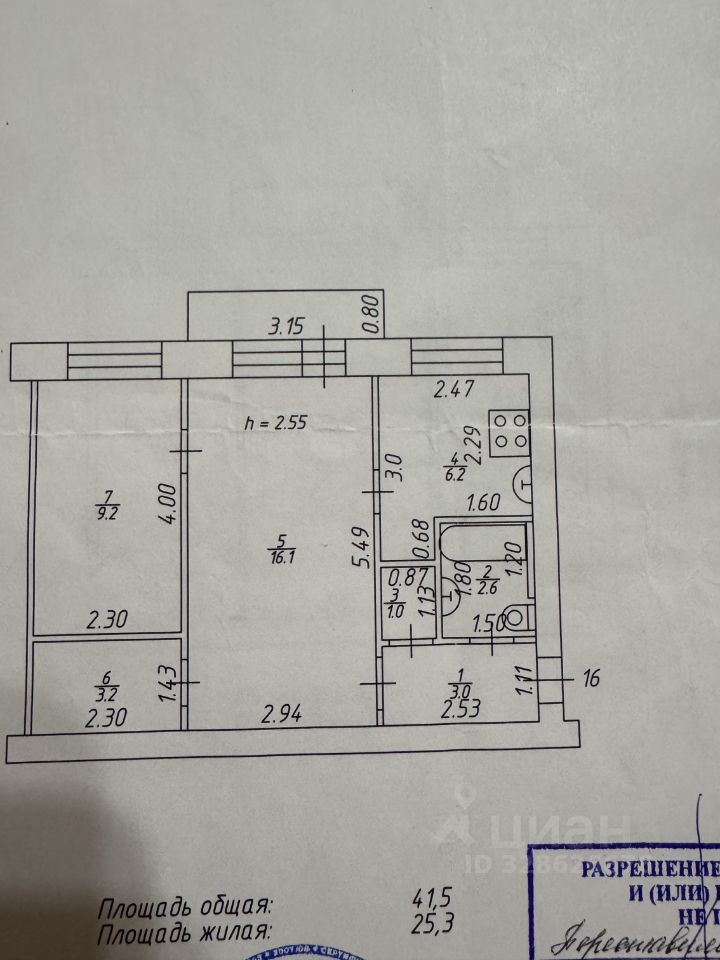 41,5 м²
