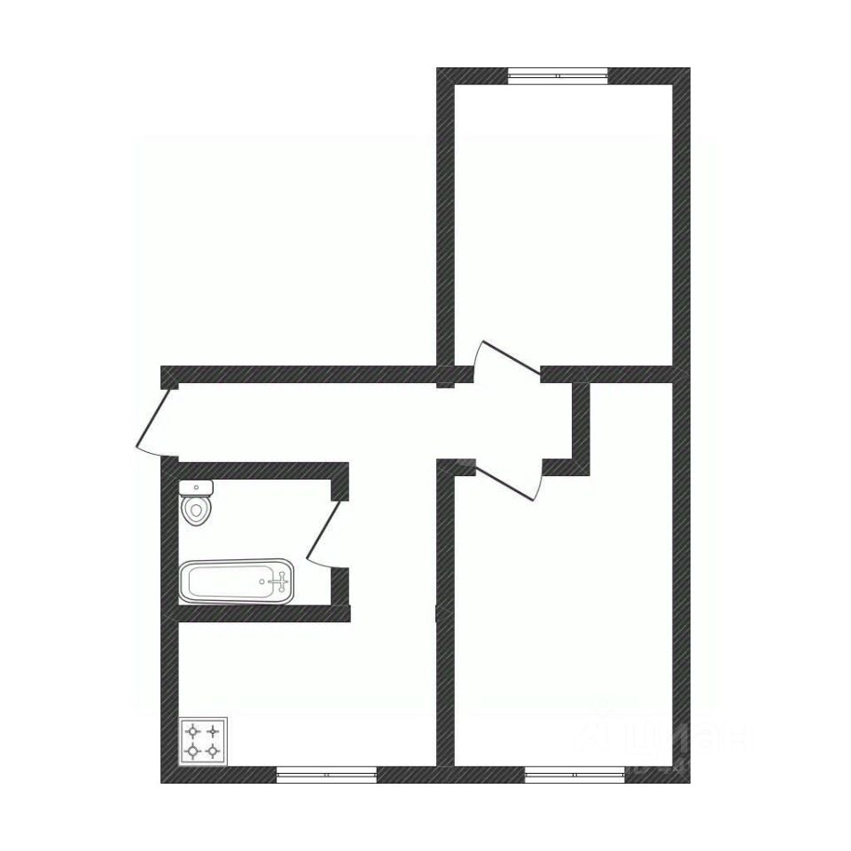Планировка: 2 раздельные комнаты, выходящие на обе стороны дома.